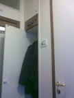 Шкаф для одежды и там же приставная лестница на вторую верхнюю полку. Лестница очень узкая.