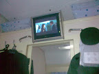 Телевизорс ДВД. Показывает только ДВД. РЖД в этом вопросе "буканьерит". Все ДВД пиратские и конечно не для публичного просмотра, но пока мы не вступили ВТО - проблем нет. Хотя в официальном меню указаны только российские фильмы, что не помешало мне посмотреть ужасный "Перевозчик 3". Фильм идиотский, и в нем пропоганда "других украинцев" для которых нормально жрать экстази с водкой! Сало походу вырезали...